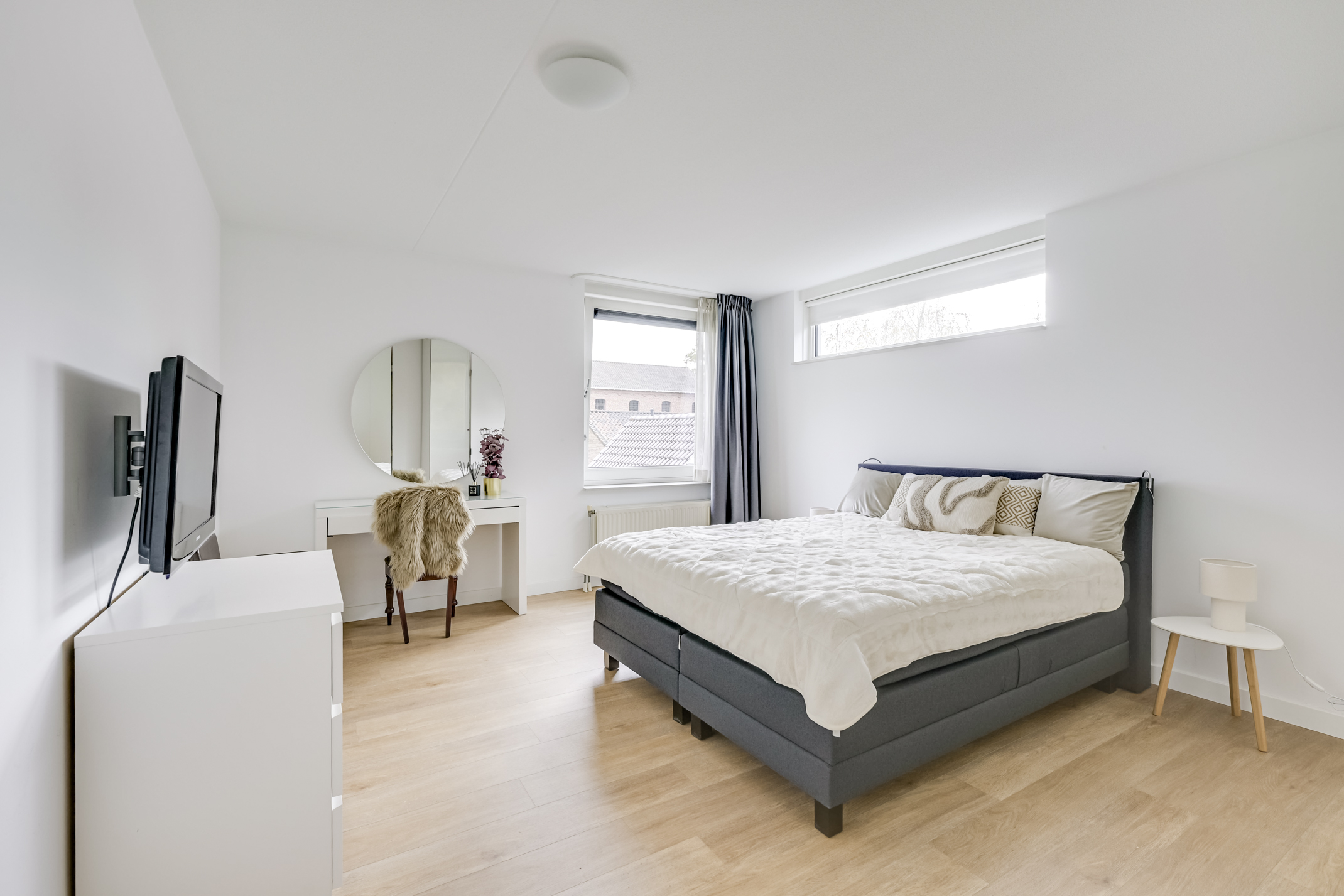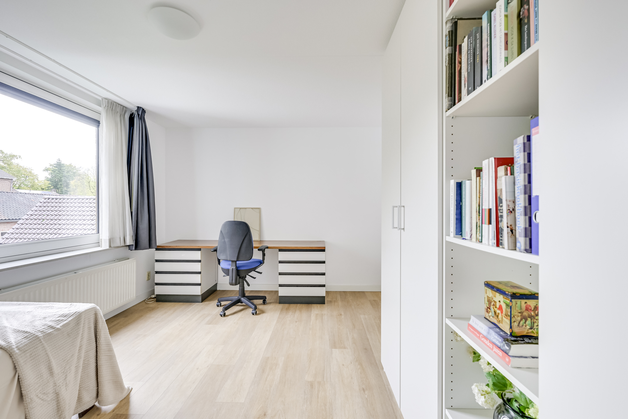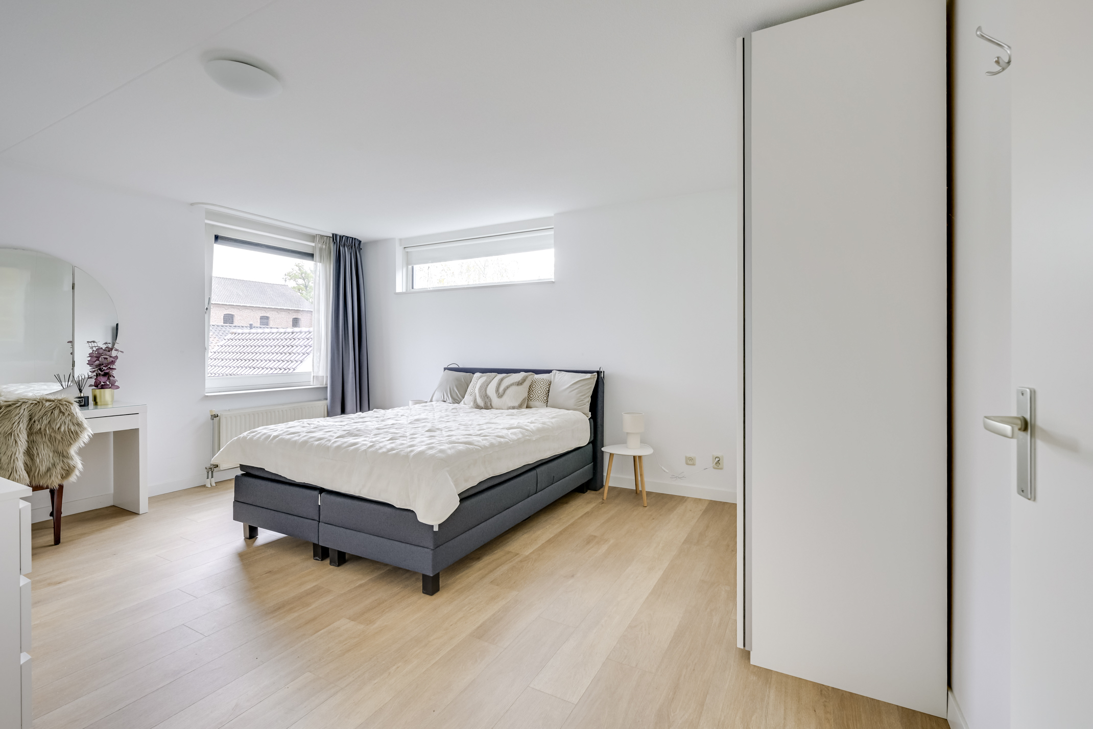 Het appartement beschikt over twee ruime slaapkamers. De hoofdslaapkamer heeft meer dan genoeg ruimte voor een groot bed en een royale kledingkast. De tweede kamer kan uitstekend dienstdoen als logeer- of hobbykamer, maar ook als rustige werkplek voor wie graag thuis wil werken.