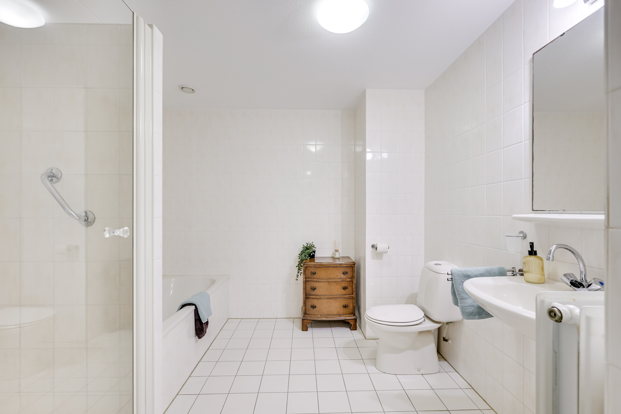 – Verzorgde badkamer waar comfort en ontspanning samenkomen.