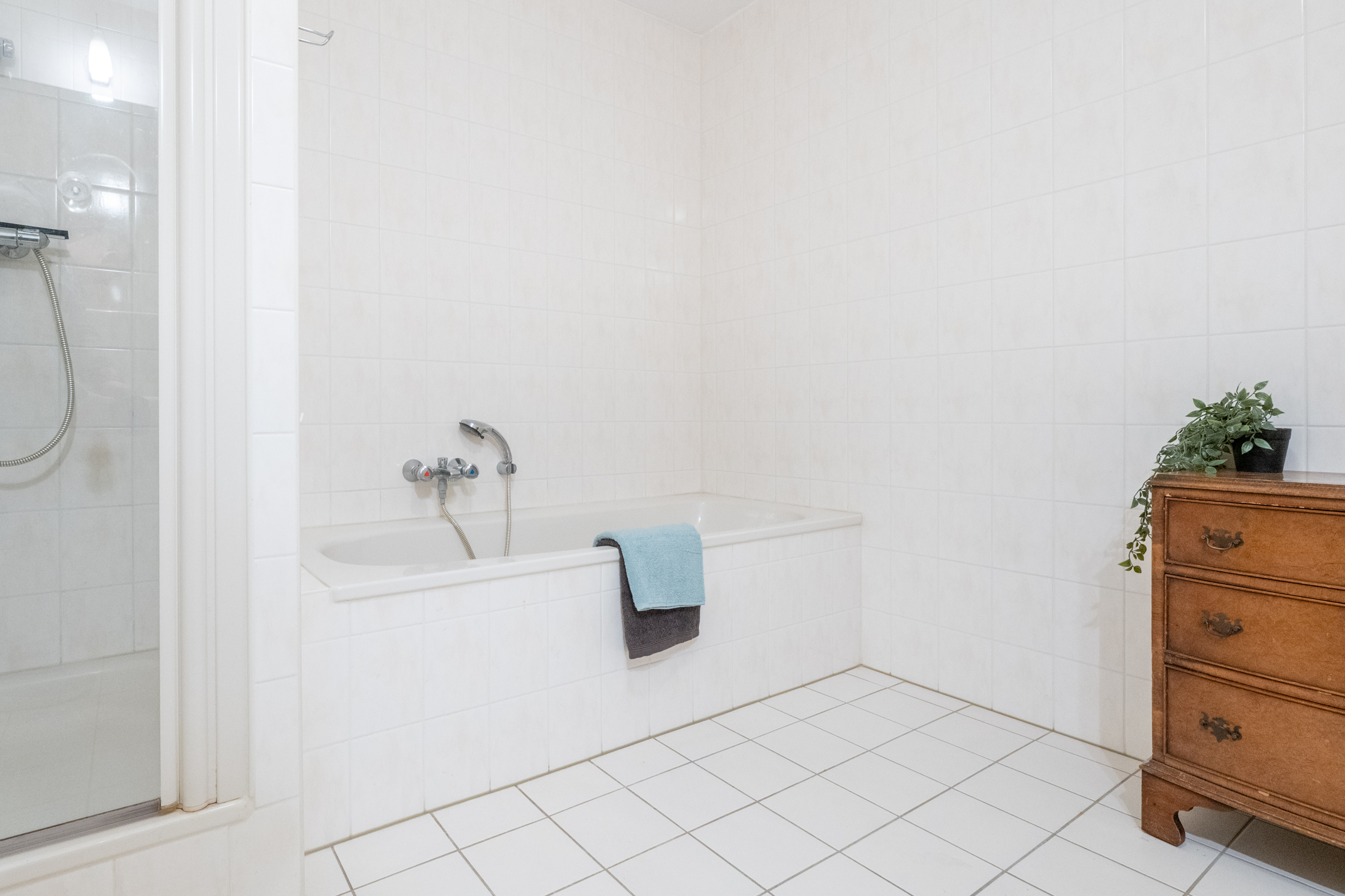 Ook de badkamer is bijzonder comfortabel. Deze is ruim en praktisch ingedeeld, met een aparte douche én een ligbad waar u na een lange dag heerlijk kunt ontspannen. Verder vindt u hier een wastafel en een tweede toilet – alles is netjes en verzorgd afgewerkt.