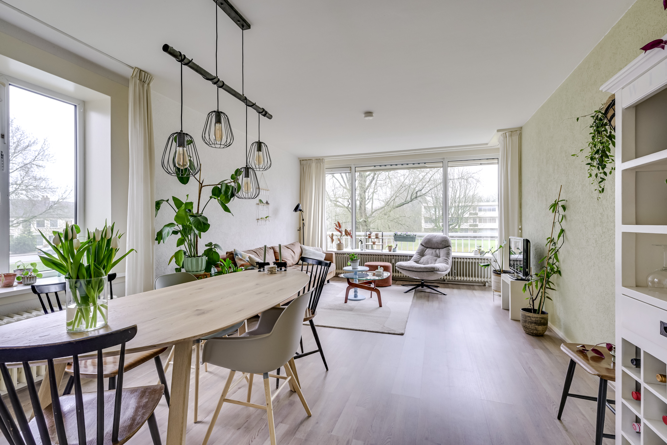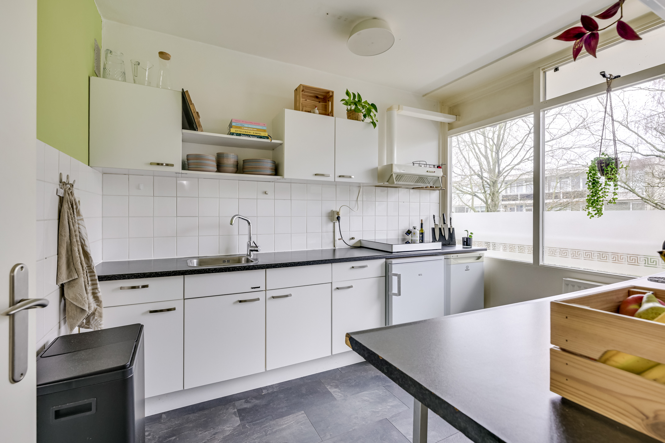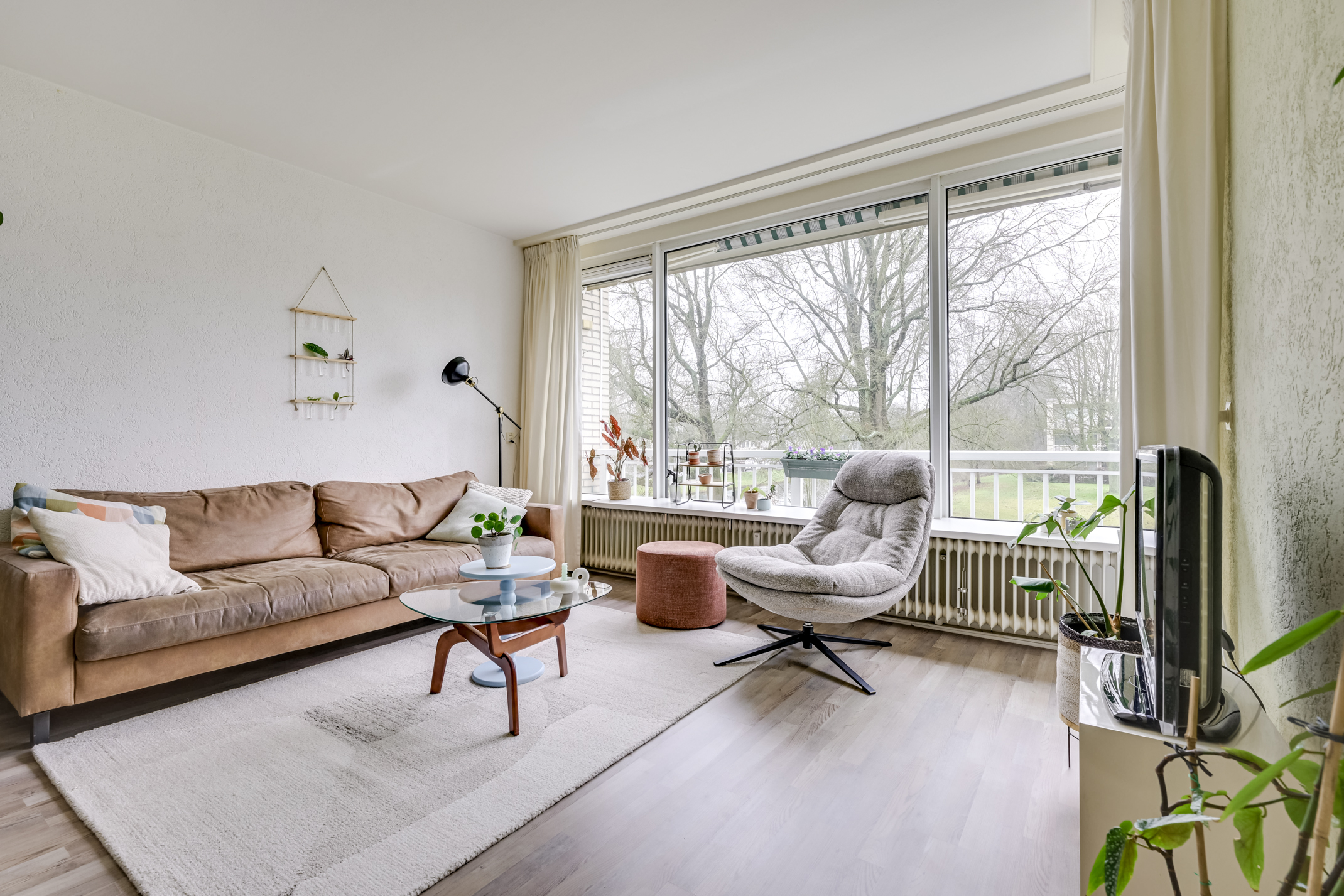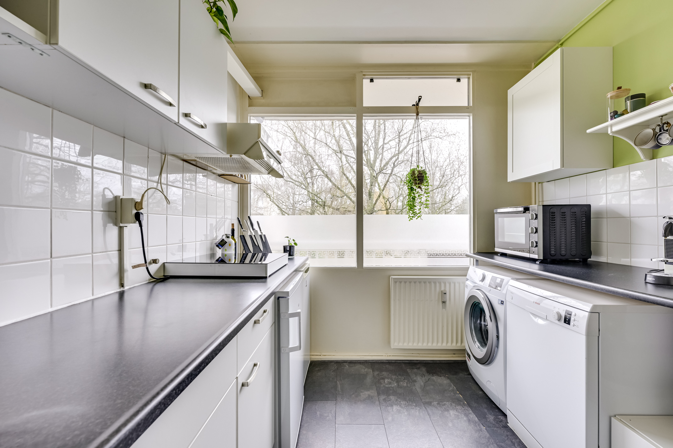 Dit appartement heeft een woonoppervlak van 83 m² en is praktisch ingedeeld. De woonkamer is ruim en licht, mede dankzij de grote ramen die zorgen voor een aangename lichtinval en een prettig uitzicht op de groene omgeving en het water. De keuken is functioneel ingericht voor dagelijks gebruik.