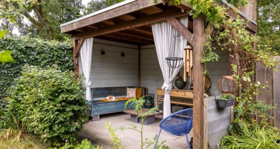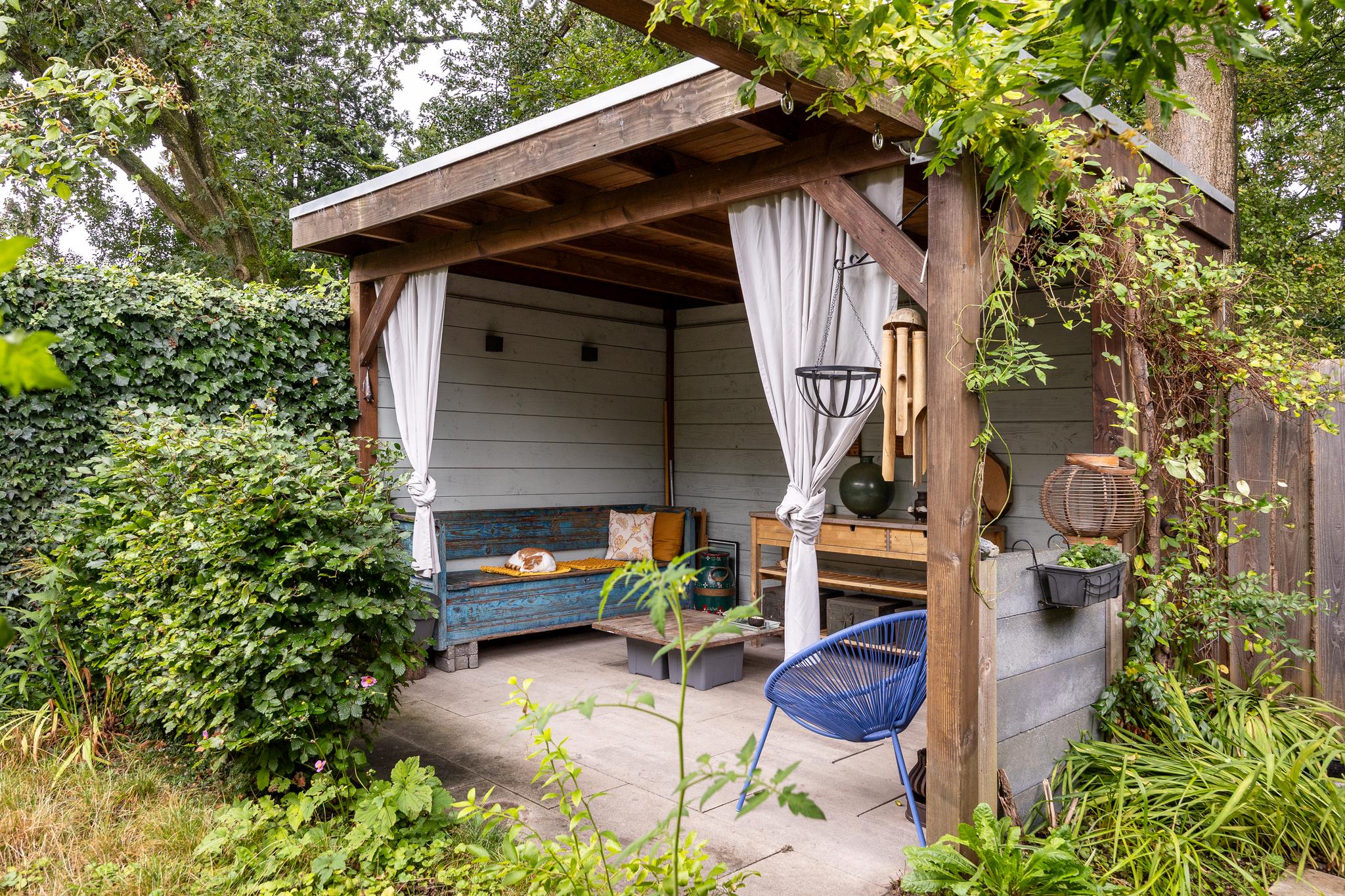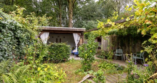 GROENE TUIN: Vanaf de ochtend kun je heerlijk genieten van de zon op verschillende plekken in de voor- en achtertuin. Deze tuin met meerdere zitjes leent zich perfect voor een BBQ met vrienden of een rustig momentje met een boek.