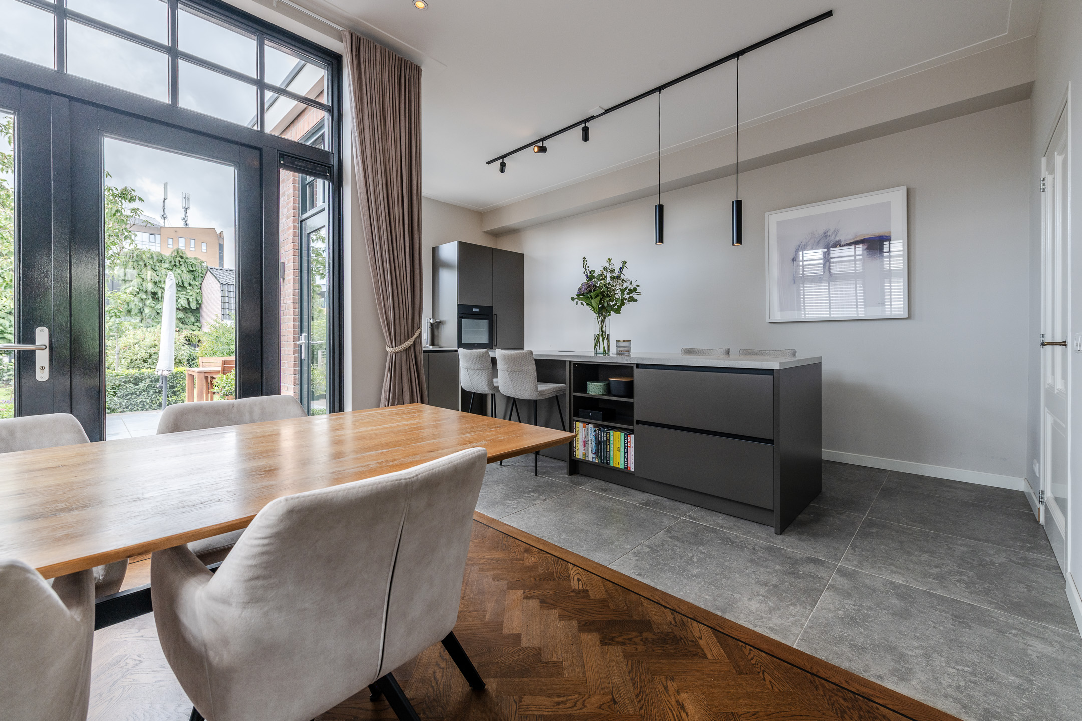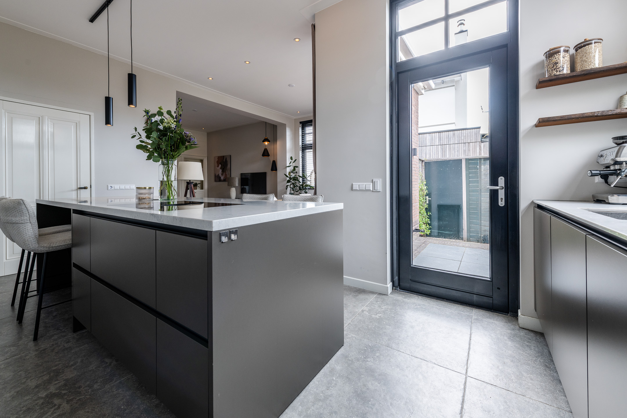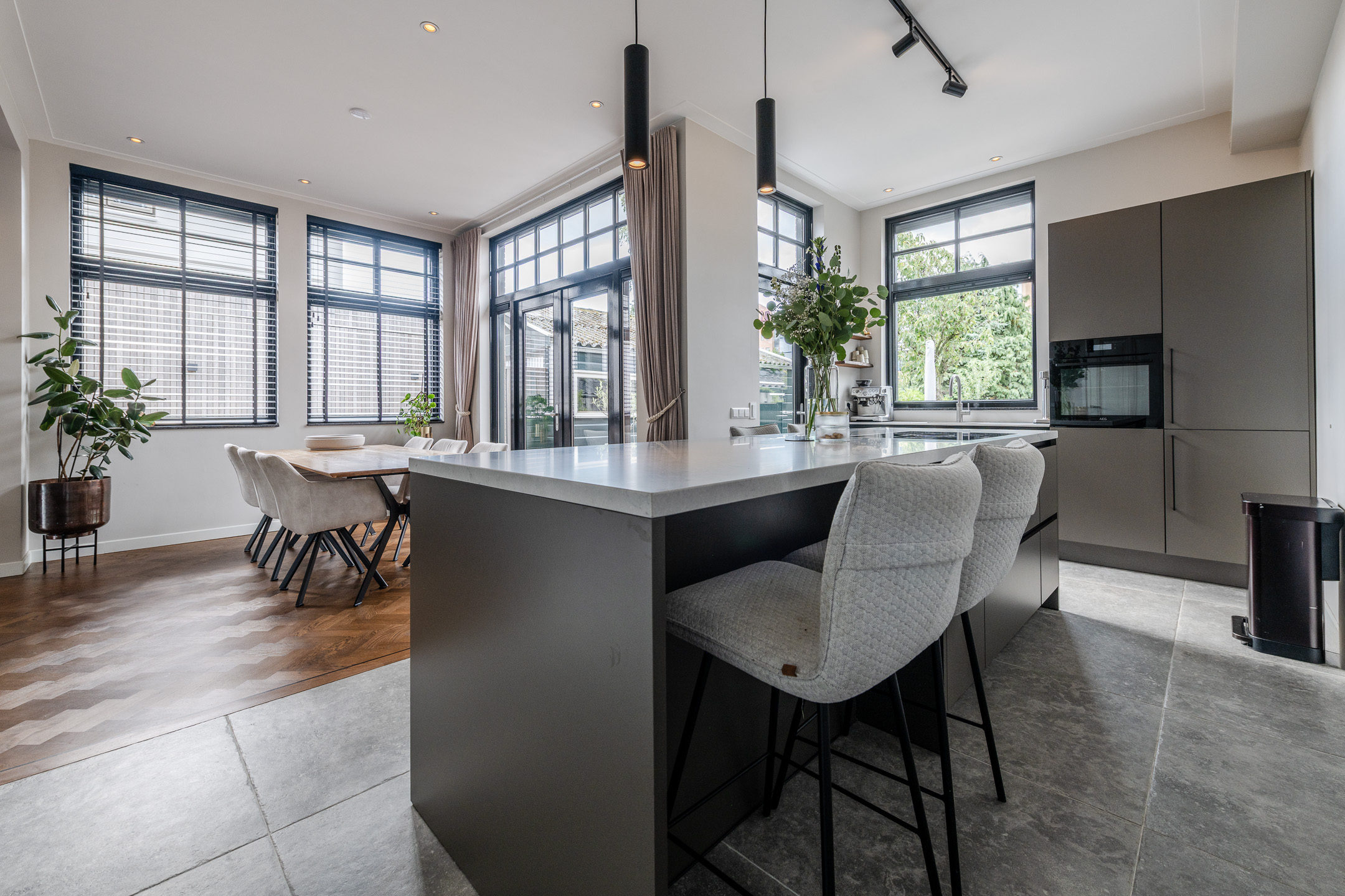 De moderne leefkeuken is echt het hart van het huis. De luxe keuken is voorzien van alle denkbare gemakken en inbouwapparatuur. Hier kun je uitgebreid koken en toch in contact blijven met familie of vrienden aan de tafel of gezellig aan de bar van het kookeiland. Op de verdieping vind je drie slaapkamers en een badkamer. De hoofdslaapkamer is rustig gelegen aan de achterzijde van de woning en heeft een ruime kastenwand voor veel opberggemak. De overige twee slaapkamers zijn met aandacht en oog voor detail afgewerkt. Deze kun je naar wens gebruiken als kinder- of werkkamer. De badkamer is praktisch en verzorgd ingericht.